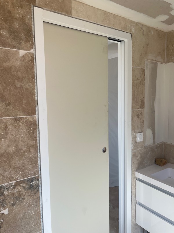 Une repose de placo neuf a été réalisée avec jointements, assurant une parfaite planéité des murs. Avant l’application de la peinture, les supports ont été préparés avec soin : ponçage, dépoussiérage et application d’un primaire d’accrochage.
